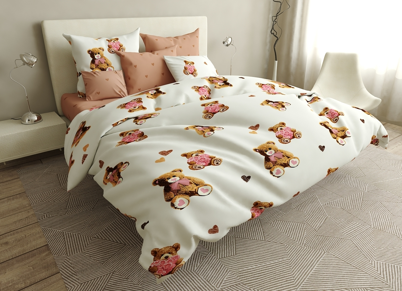 Комплект постільної білизни Сатин "Ведмежатко" Євро