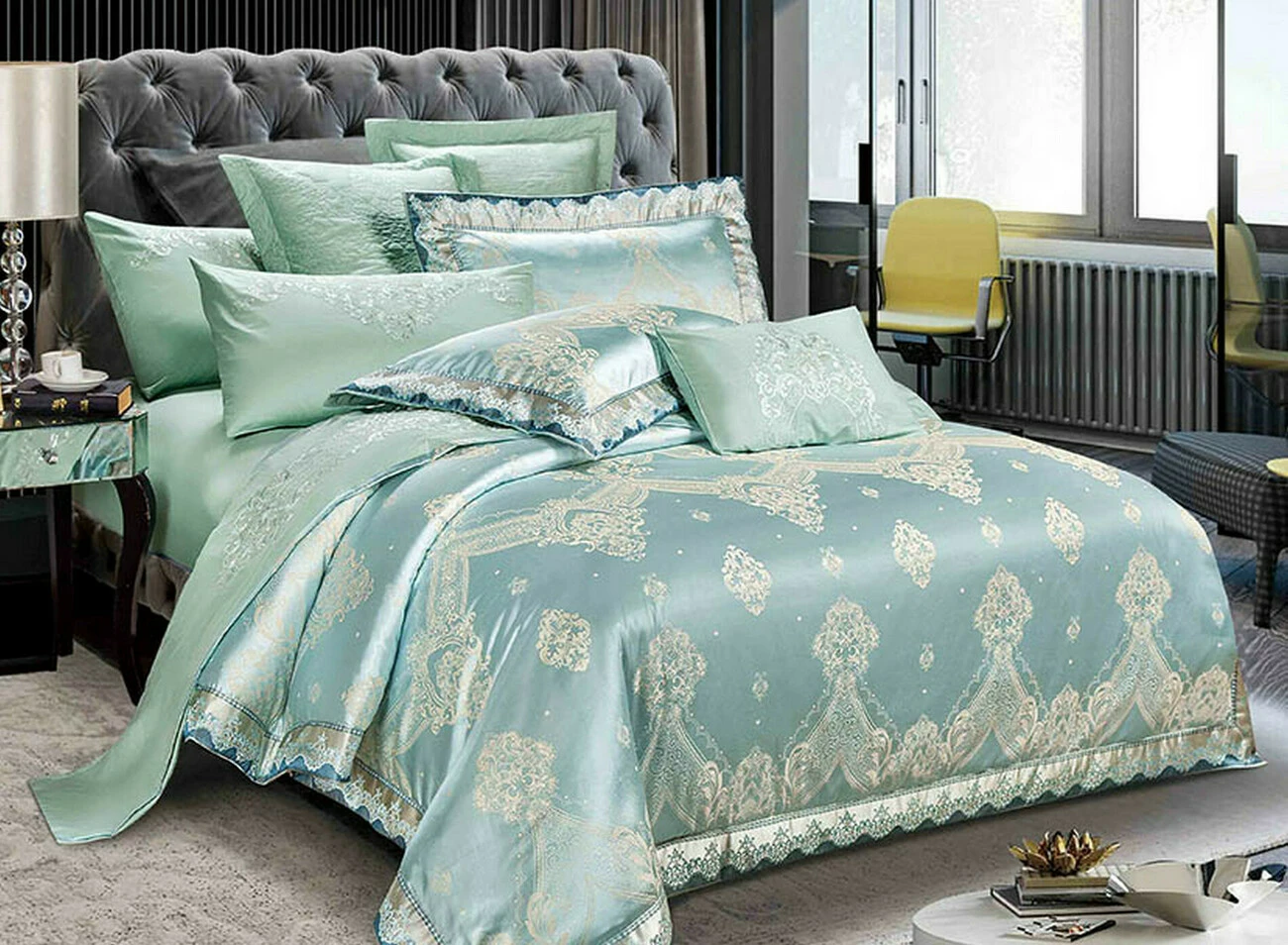 Хороші теплопровідність та повітропроникність жакардової тканини перешкоджають парниковому ефекту, тому з неї виходить ідеальна постільна білизна.